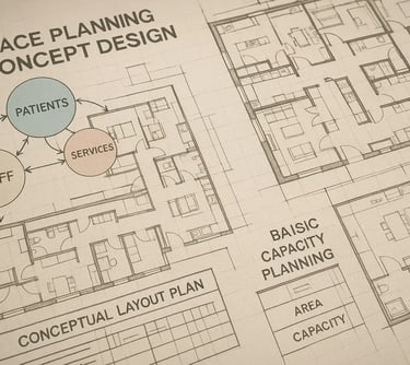 We translate your vision into functional layouts that optimize movement, zoning, and user experience—while complying with NABH and other regulatory norms.