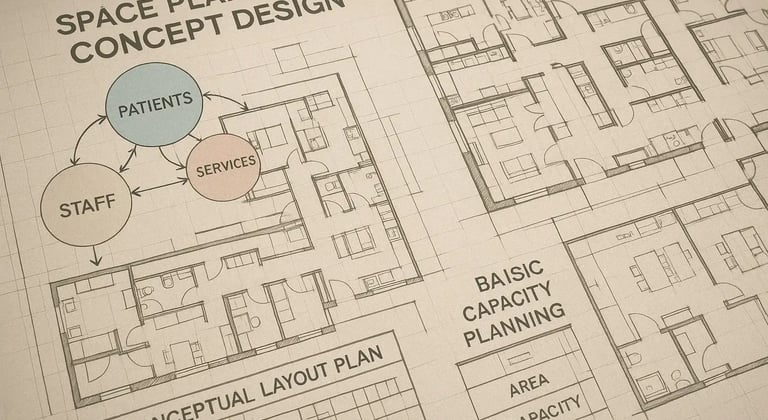 ✔ Zoning & flow diagrams (patients, staff, services)