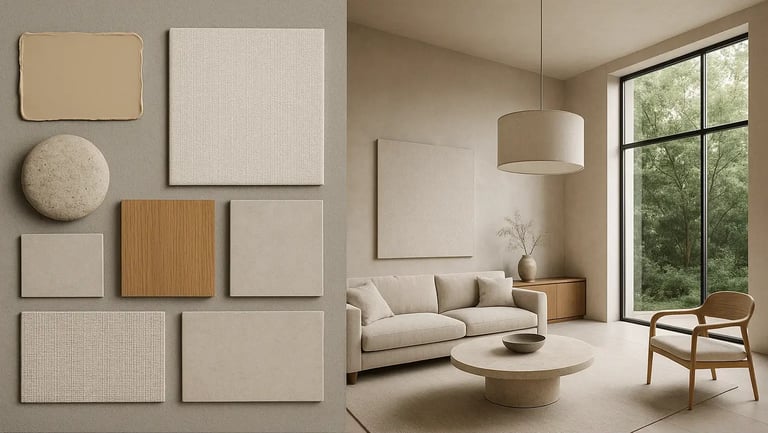 ✔ Color palette and material mood boards